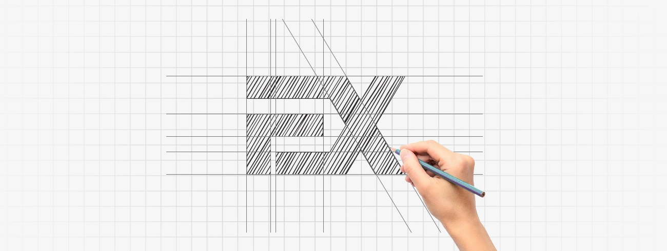E上半部分的空缺象征个性、未知和攀爬;EX的连接象征陪伴和一路同行。